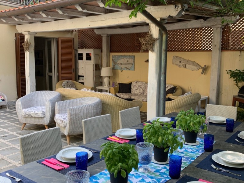 Fiumetto, a pochi passi dal mare, villa singola disposta su due livelli e composta al piano terra da soggiorno/pranzo, cucina, camera matrimoniale con bagno interno, camera matrimoniale bagno con doccia e servizio igienico; al piano primo 4 camere, due bagni e terrazza abitabile. Giardino su tre lati con accesso carrabile e ampia zona verandata per pranzi e cene all'aperto.