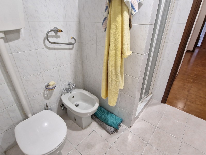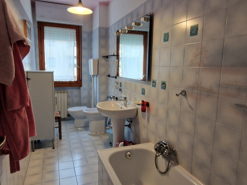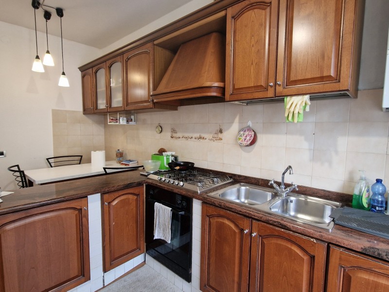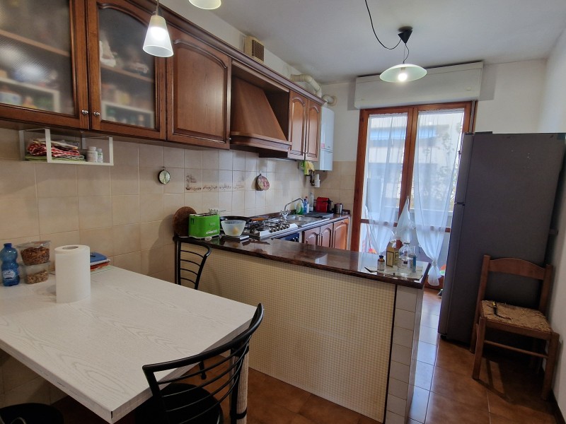 L ìimmobile in buoni stato di manutenzione si compone di ampio soggiorno con piccola terrazza, cucina abitabile, due camere matrimoniali, camera singola o stanza armadi, due bagni, ripostiglio , box auto e giardino condominiale.