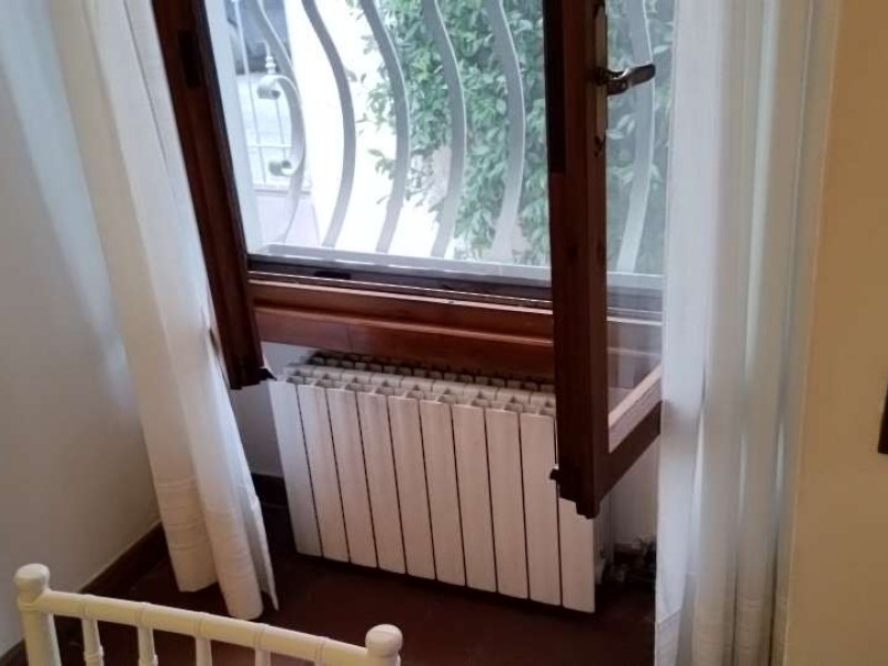 Al primo piano disimpegno, bagno finestrato con ampio vano doccia, camera matrimoniale con armadio a muro grande e profondo.