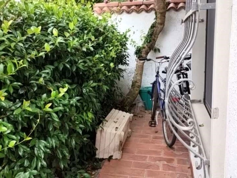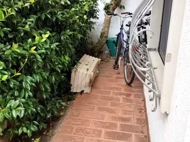 Viareggio zona Ex Ospedale Tabarracci a due 2 isolati dalla pineta di Ponente in strada tranquilla terratetto semi indipendente su 2 livelli in buonissimo stato di manutenzione posizione d'angolo in piccolo contesto di solo 3 unità senza spese di amministratore entrata in comune da comoda resede privata a disposizione delle tre unità con ingresso indipendente attraverso portoncino blindato giardinetto davanti di proprietà con posto per più bici , con spazio privato esclusivo sul retro uso lavanderia - L immobile si compone al piano terra ingresso, sala soggiorno zona living con camino e vano scale a vista, disimpegno con armadio a muro uso ripostiglio, camera media dove entra agevolmente un letto matrimoniale, bagno di servizio con bidet e finestra, cucina con annessa saletta da pranzo da cui si accede alla lavanderia -